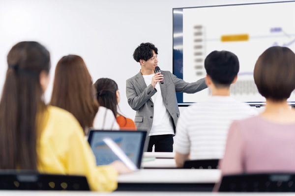 カメラ目線の講義の収録ではなく、実際のセミナーを開催し、聴講者を前に講義いただく形式で収録しています。 この形態での制作は、多くの労力とコストがかかりますが、講師が話しやすい場を作ることで 「伝わりやすさ」「身につく研修」を優先してコンテンツ制作をしています。